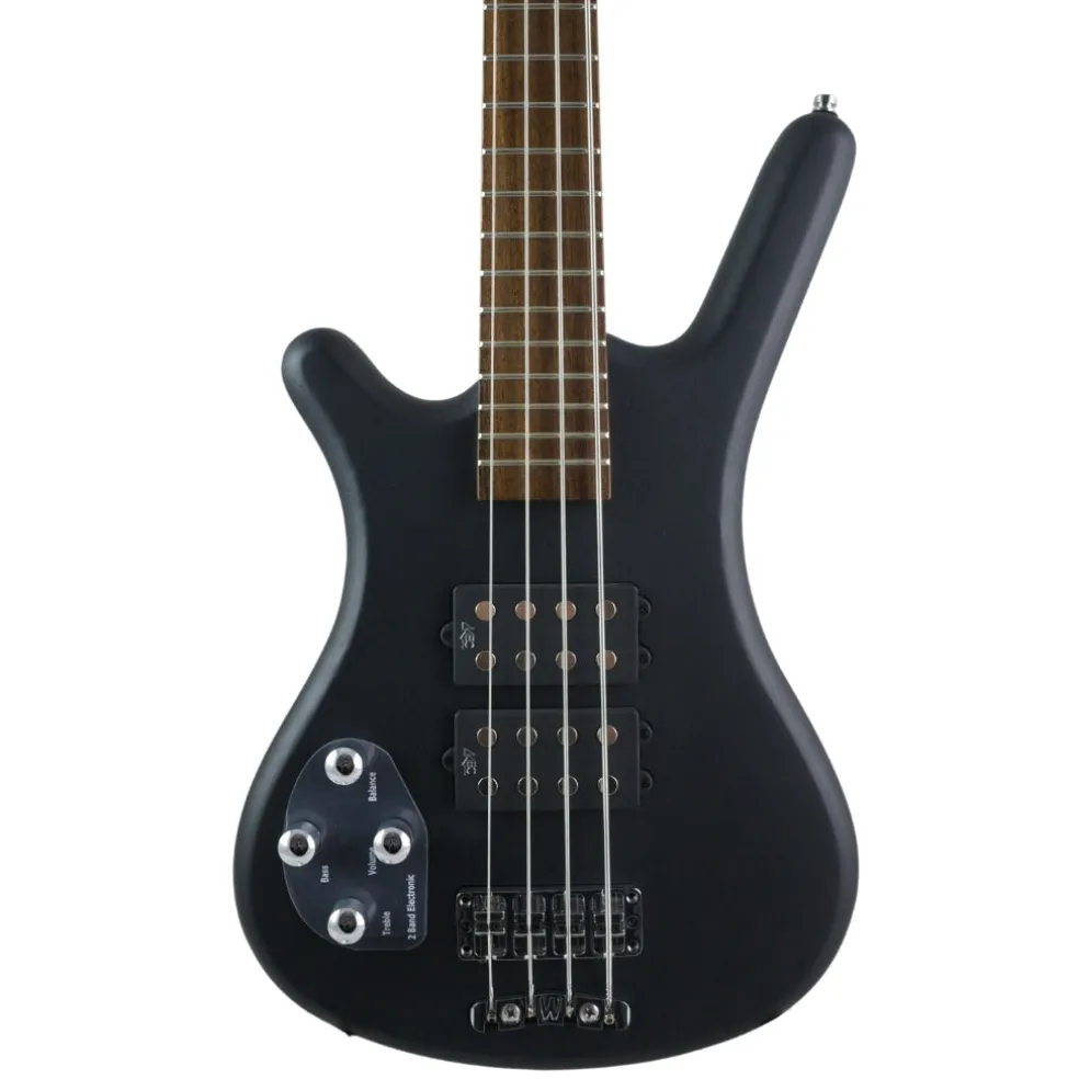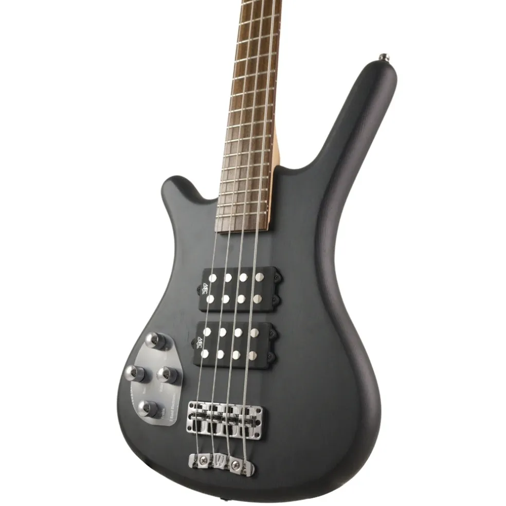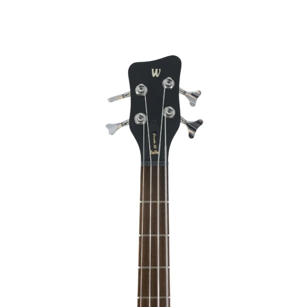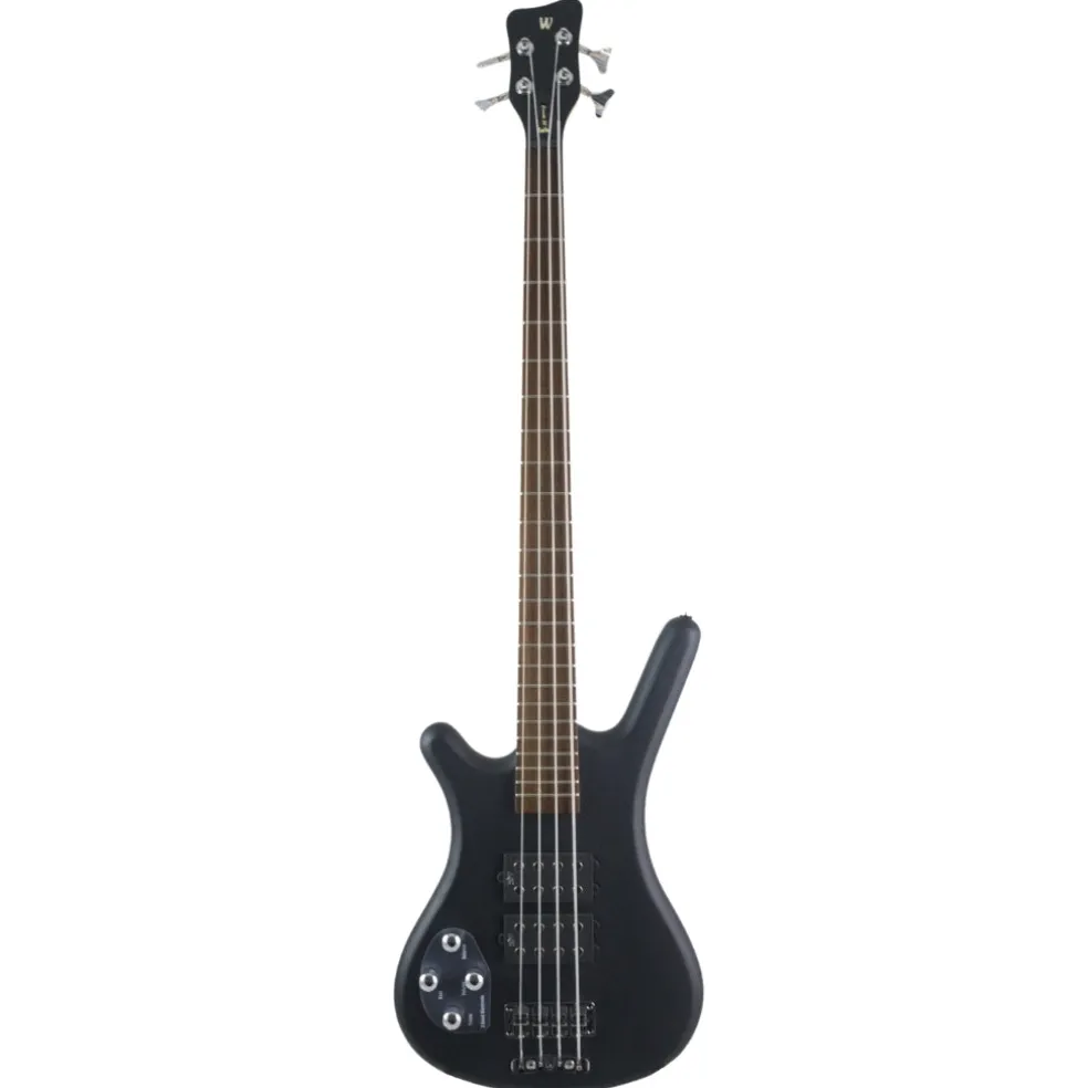 Left-handed Warwick RockBass Corvette $$ 4 String in a Nirvana black transparent satin finish.