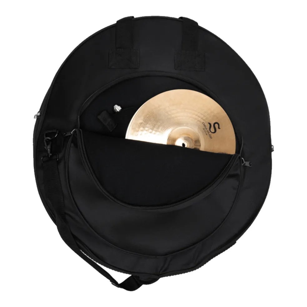 Cymbal bag featuring premium-grade shoulder strap, heavily padded handles, and numerous internal and external pockets for maximum protection and durability on the road.