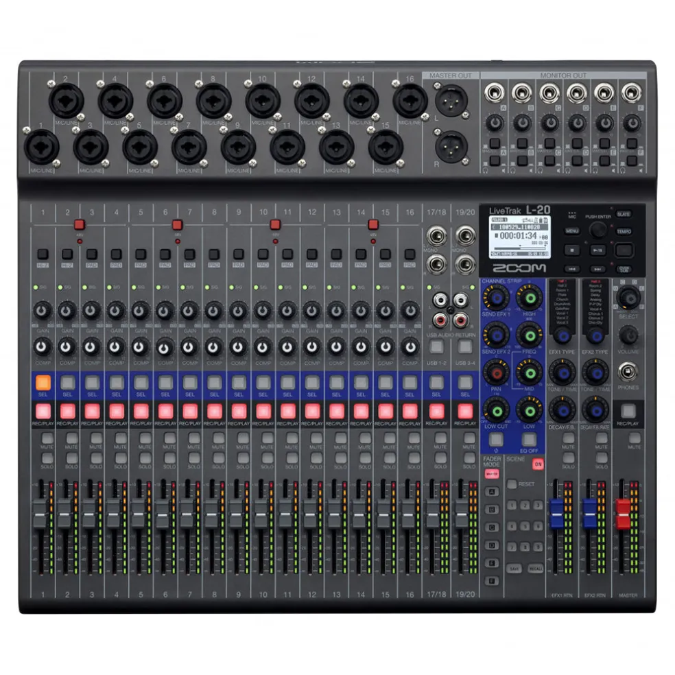 The LiveTrak™ L-20 is the new digital console offering everything creators need to mix, monitor, and record complex productions. With 20 discrete audio channels and six individual custom monitor mixes, it’s built for bigger, bolder arrangements.